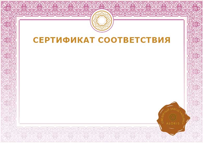 Ювелирный завод «Алорис» гарантирует высокое качество и соответствие государственным стандартам каждого изделия. Официальным подтверждением этому служат сертификаты и паспорт качества изделия, в котором содержится в том числе и его полное описание
