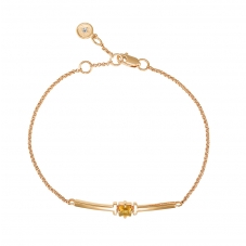 Являясь разновидностью кварца золотистого оттенка, цитрин очень прочный и имеет богатую цветовую палитру. Он прекрасно смотрится в любых украшениях и его легко обрабатывать, поэтому ювелиры охотно используют этот камень. В переводе с латыни цитрин "лимонный" камень, но его еще называют "солнечным" благодаря лимонно-золотистому окрасу. В отражении золотой полированной поверхности браслета его сверкание приобретает особую яркость.