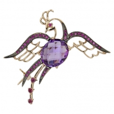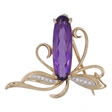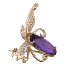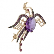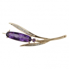 Броши с аметистом считаются сильным акцентом в одежде, поскольку загадочное мерцание густого по окрасу фиолетового или розово-лилового камня на золотом фоне привлекает внимание окружающих. Выбор места ее ношения – увлекательная игра. Следует лишь не забывать о чувстве меры.