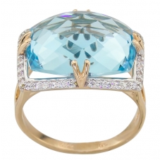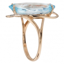 Кольцо с голубым топазом из золота 585 пробы - лучший подарок любимой женщине! Натуральный голубой топаз один из самых привлекательных полудрагоценных камней. В легендах разных народов этот камень называют прихотью Господа, камнем Апокалипсиса, слезою ангела, камнем придворных магов и волшебников.