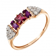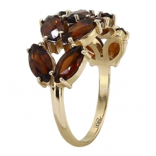 Золотое кольцо с гранатом - одно из самых древних и поэтичных украшений. В нём сливаются воедино великолепие золота и красота природных камней. Изумительная огранка граната, неповторимое своеобразие кольца расскажут окружающим о Вашем статусе и материальном положении, подчеркнут изящество и благородство.