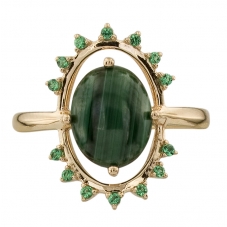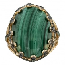 Золотое кольцо с малахитом притянет взгляды окружающих и не останется незамеченным. В ювелирных изделиях глубокий зеленый цвет камня гармонично сочетается с цветом благородного металла - золота. Причудливый структурный рисунок делает каждое украшение с малахитом неповторимым и особенным. Наши мастера лишь умело его подчёркивают и обрамляют, ведь в толще минерала он создан самой природой. Кольца с малахитом от «Алорис» по настоящему прекрасны!