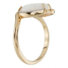 Золотое кольцо с опалом покорит сердце энергичной «земной» женщины, уверенной в себе, успешно сочетающей семейную жизнь и карьеру. Опал способствует развитию личности и талантов в творческих людях, является камнем чистых помыслов и великодушия.