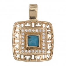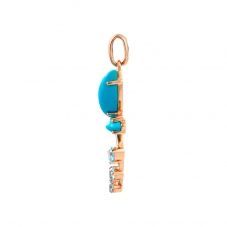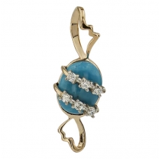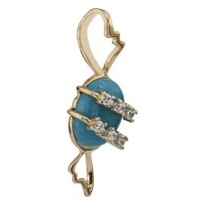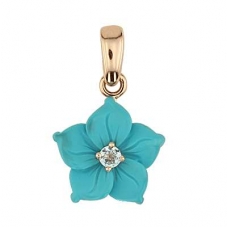 Изящный дизайн золотой подвески с бирюзой привлекает внимание, подчеркивая шарм женщины. Особенно элегантно украшение смотрится с глубоким вырезом декольте, дополняя и освежая образ прекрасной дамы. Бирюзовая капля или цветок в золотом ажурном обрамлении не останутся незамеченными окружающими.