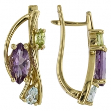 Для юных девушек – жизнерадостные композиции с аметистом, хризолитом и голубым топазом. Искусно ограненные самоцветы похожи в них на разноцветные капли на тонких золотых веточках, придавая особое очарование изделию.