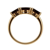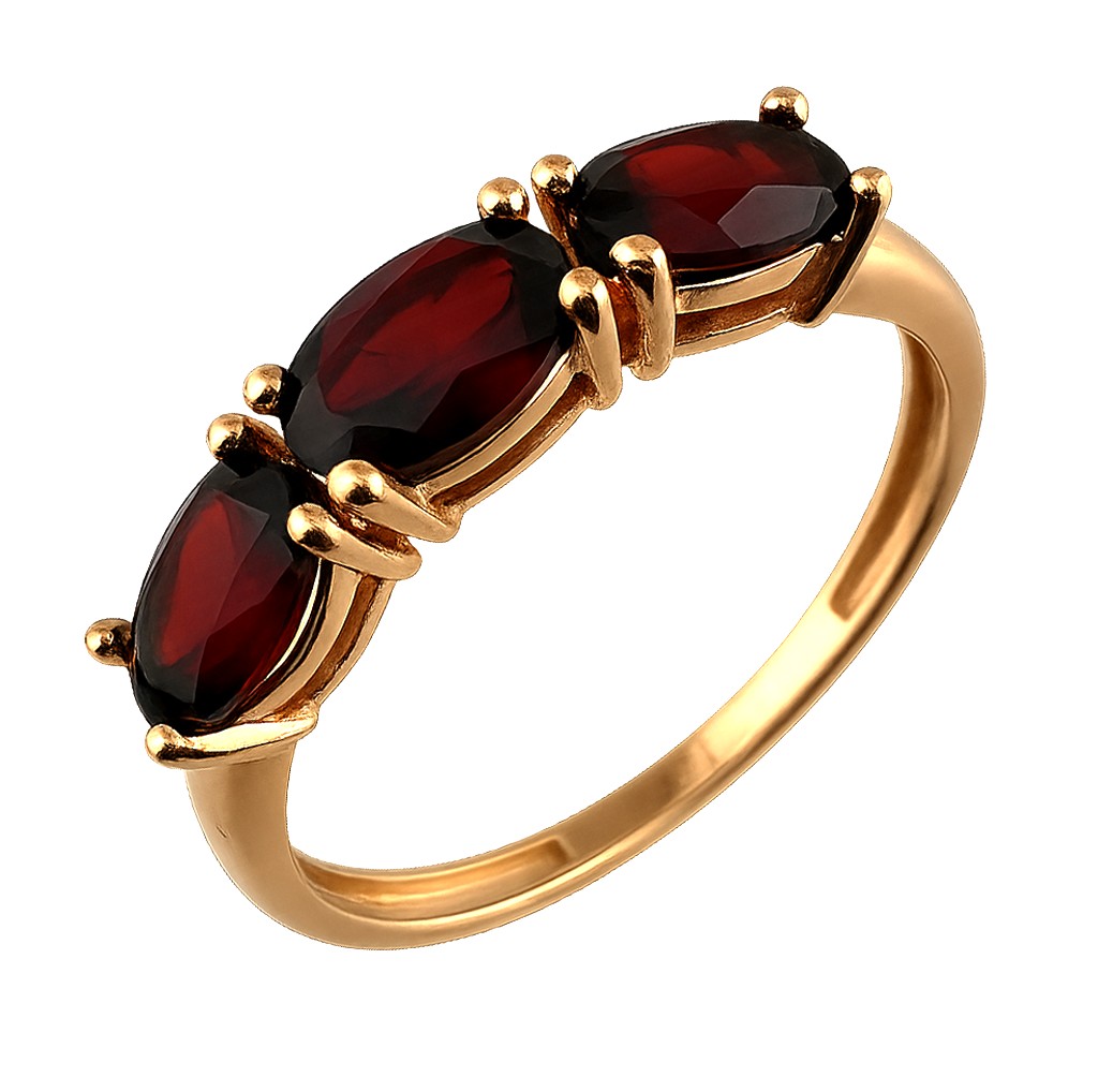 Кольцо 2502Г выполнено из золота 585 пробы и украшено натуральными вставками: 3 Гранат овал 4 мм на 6 мм, вес 1,575 карат