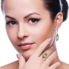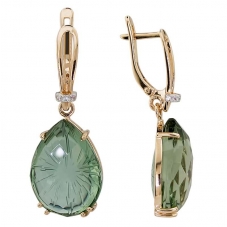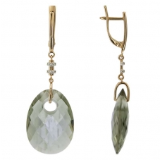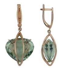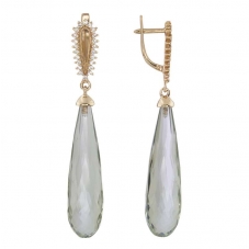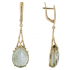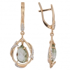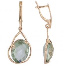 Серьги подвесные с аметистом зеленым